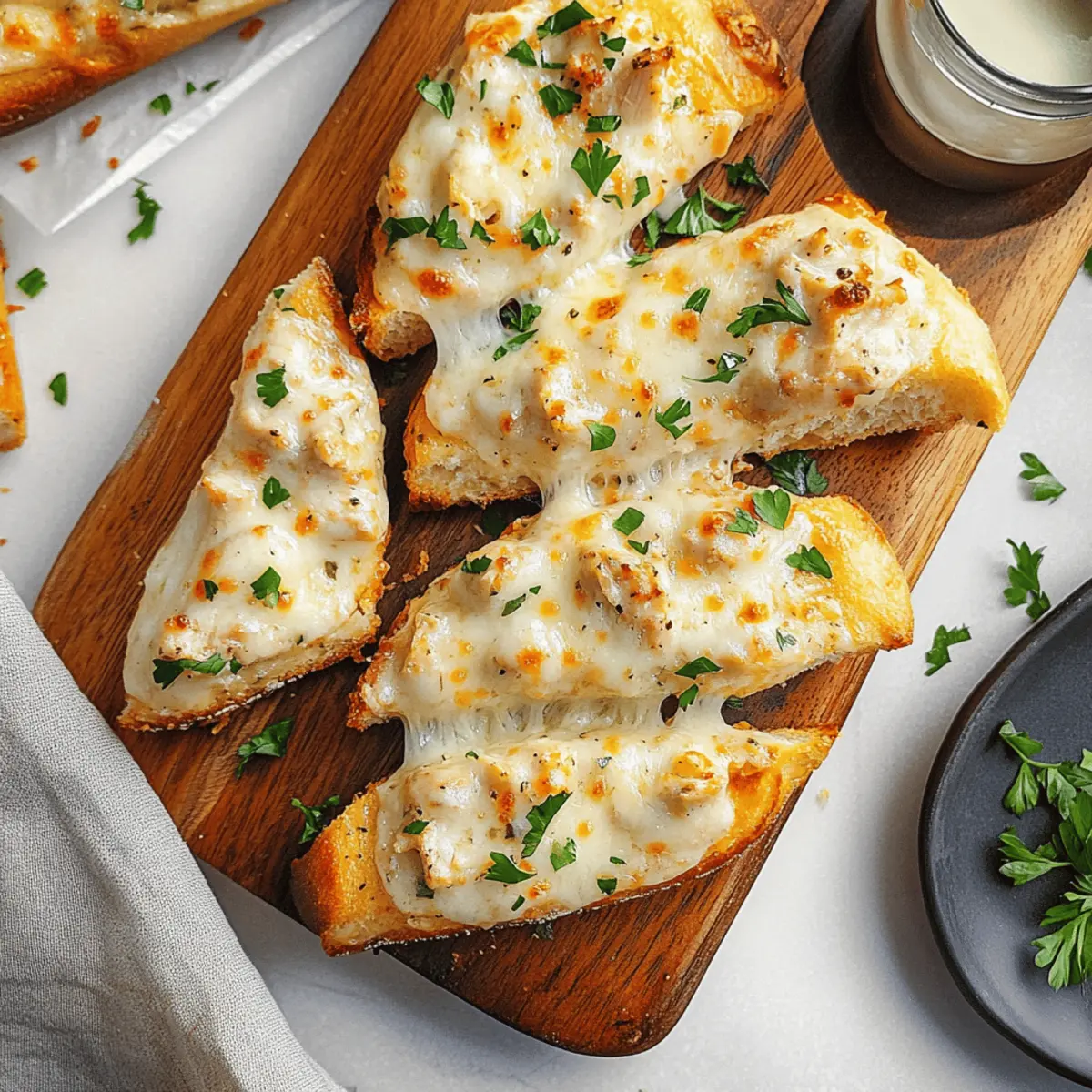 - Cheese Combinations: Feel free to mix cheeses; pairing mozzarella with something sharper like aged cheddar enhances the creamy flavor of the Chicken Alfredo Garlic Bread.
