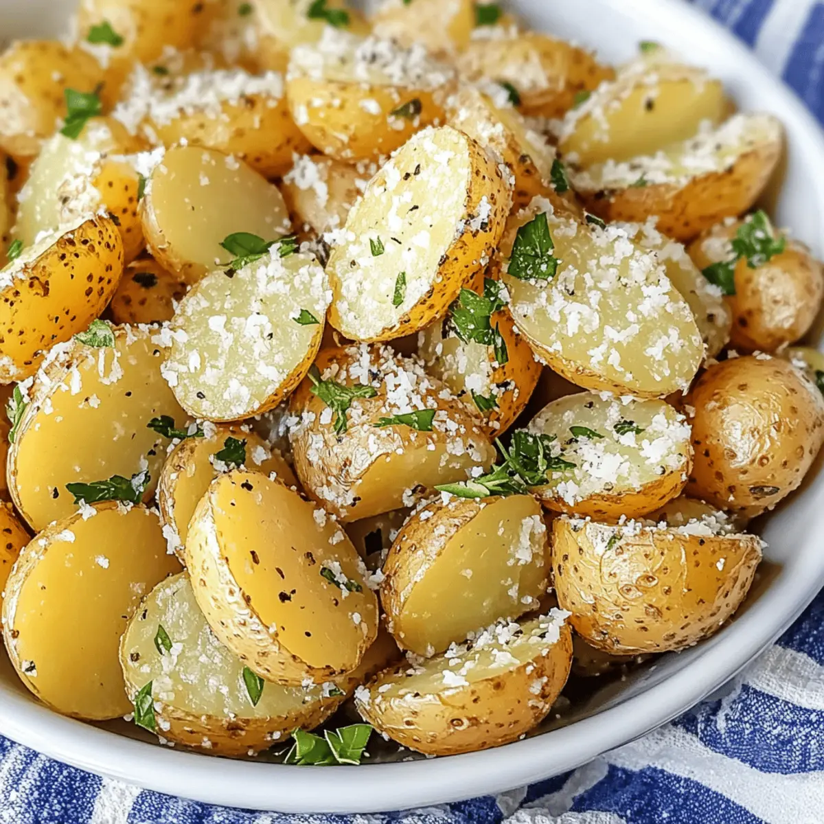 - Transfer the potatoes to a serving dish and garnish with Parmesan cheese and extra parsley before serving.