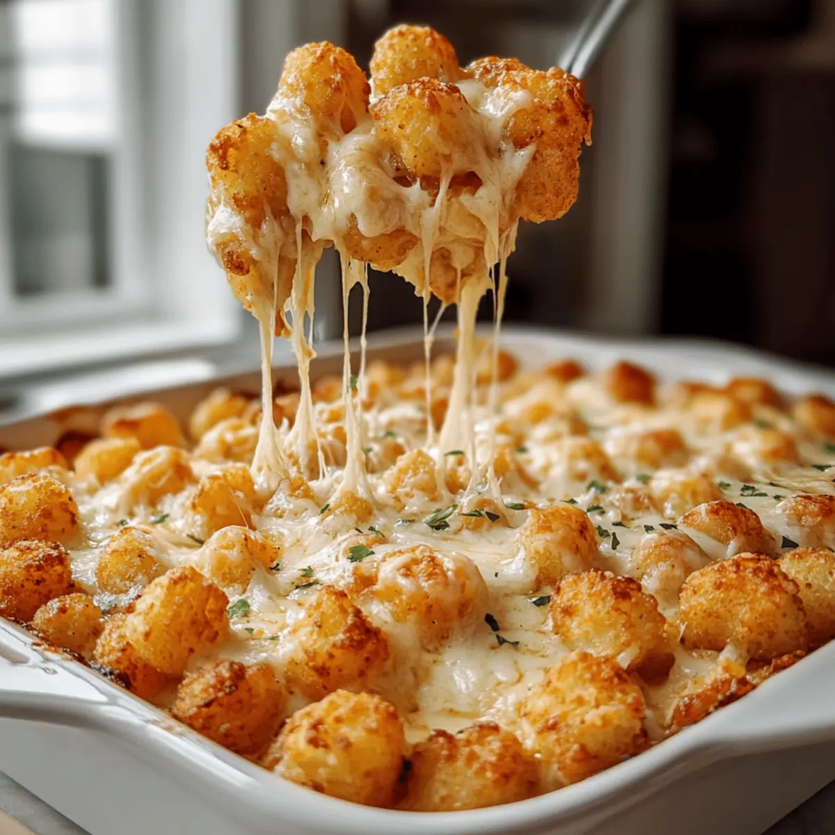 Extra Crunch: Top your tater tots with crispy bacon bits for that satisfying crunch, pairing savory goodness with creaminess.