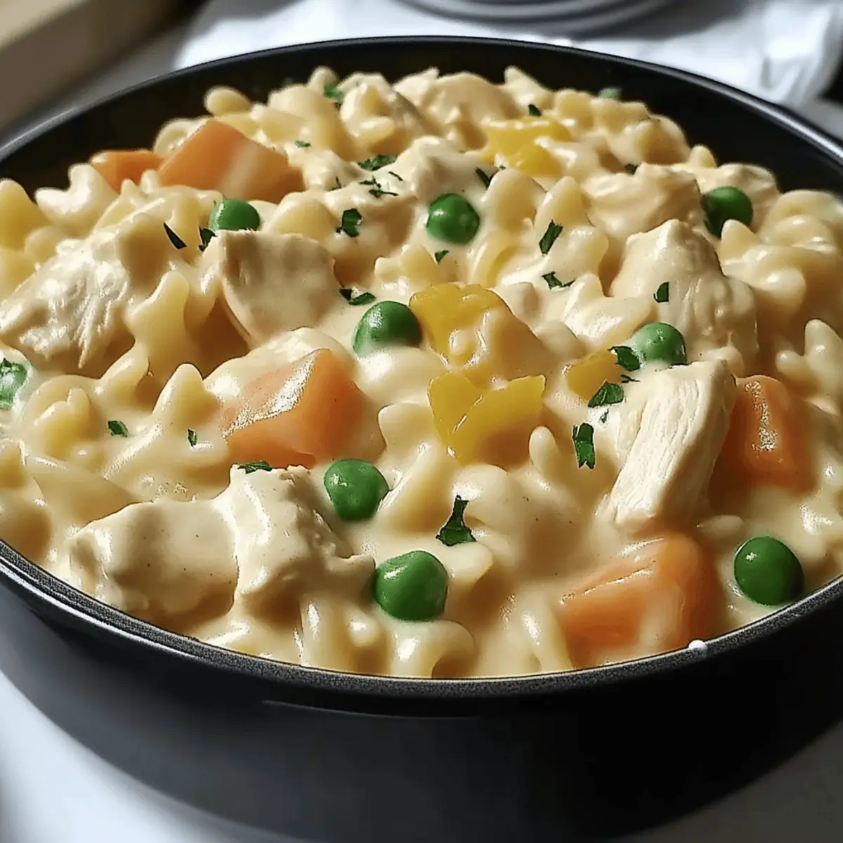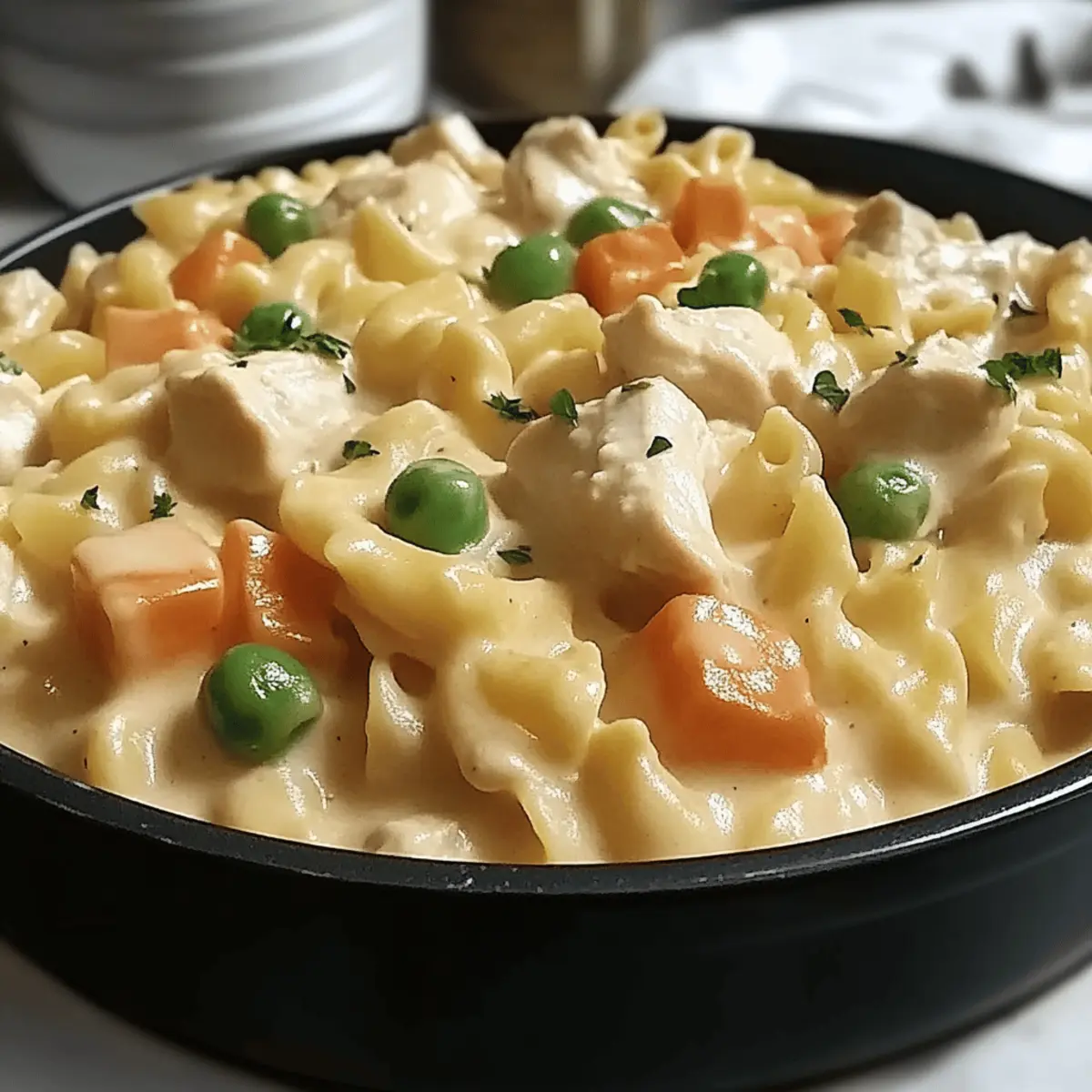 Nostalgic Flavors: Each bite delivers the timeless taste of chicken pot pie, wrapped in a creamy pasta dish that feels like a warm hug.