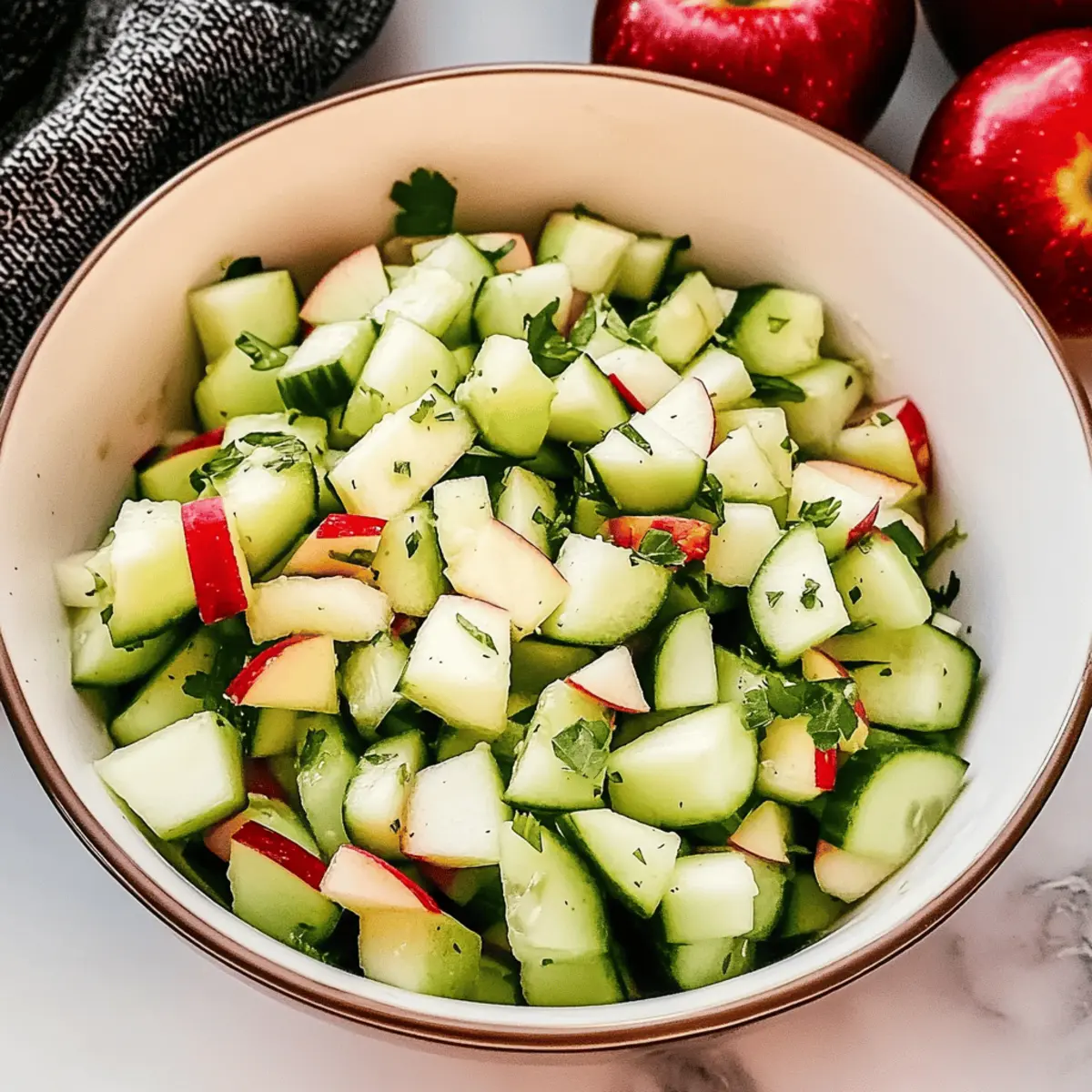 Prevent Browning: Toss apple pieces in lemon juice right after chopping. This keeps them looking vibrant and fresh in your refreshing cucumber apple salad.
