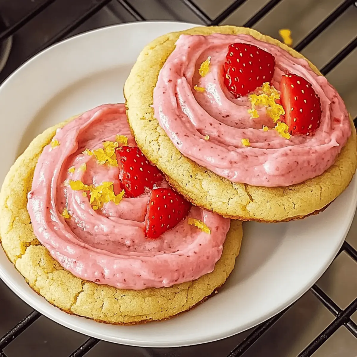 - Spread a generous layer of strawberry buttercream on cooled cookies and garnish with extra lemon zest.