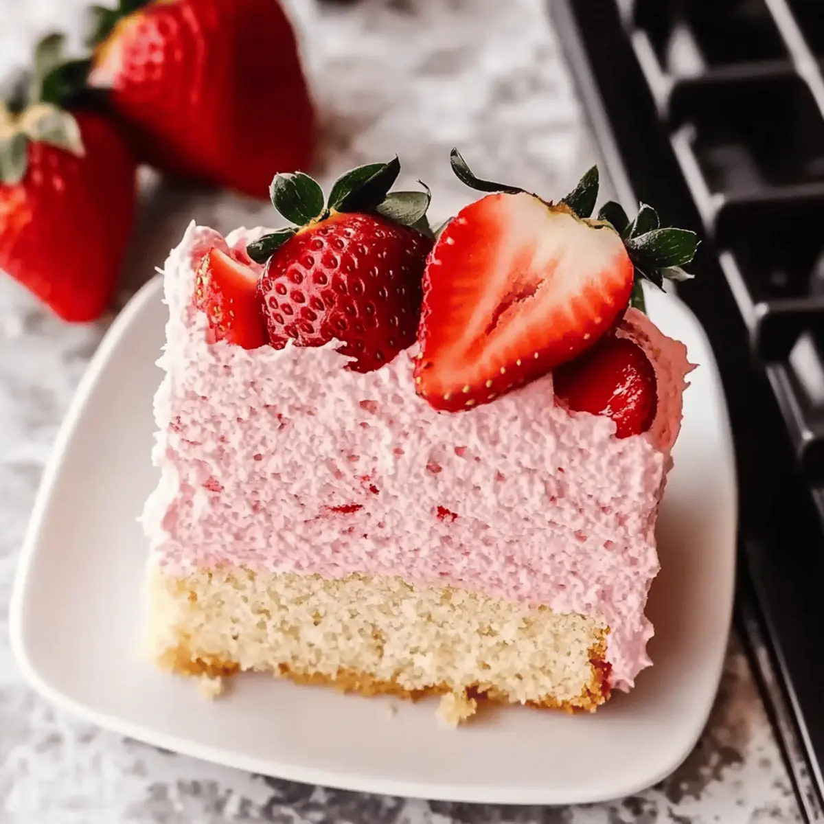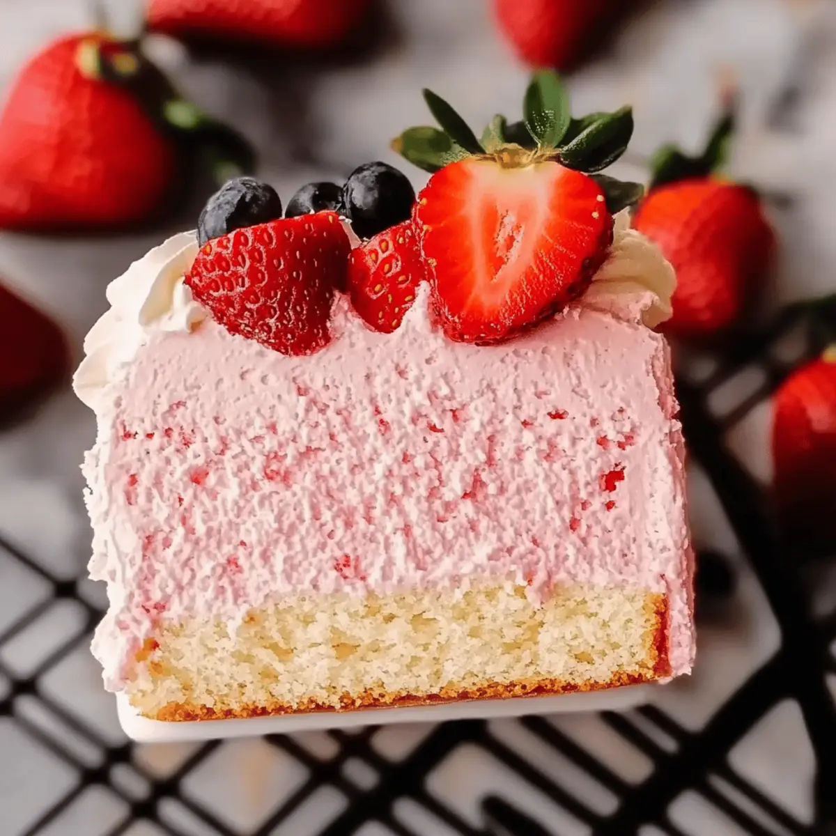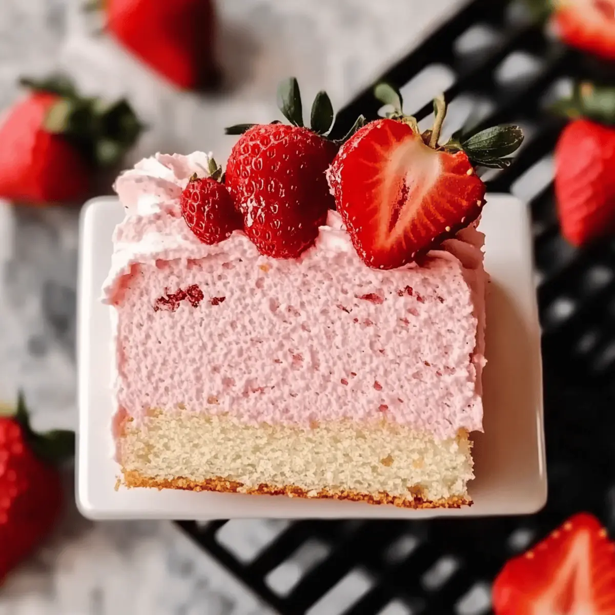 Lightness defines this dessert, with a fluffy texture that melts in your mouth. Effortless preparation means less time in the kitchen and more time enjoying with loved ones. Versatile at its core, you can easily swap strawberries for your favorite fruits or tailor it to meet dietary preferences. Make-ahead friendly, it’s perfect for busy days; prepare in advance and impress guests! This stunning cake doesn’t just taste great; it looks beautiful too, making it an eye-catching centerpiece for any event. Seriously, you’ll want to serve this alongside other favorites like Strawberry Cheesecake Cookies for a delightful spread!