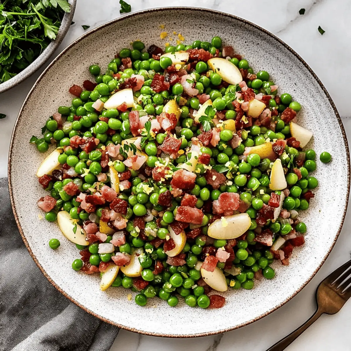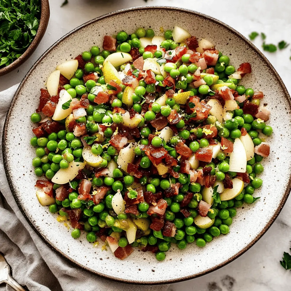 Thanksgiving Peas with Crispy Pancetta and Sweet Pear Delight