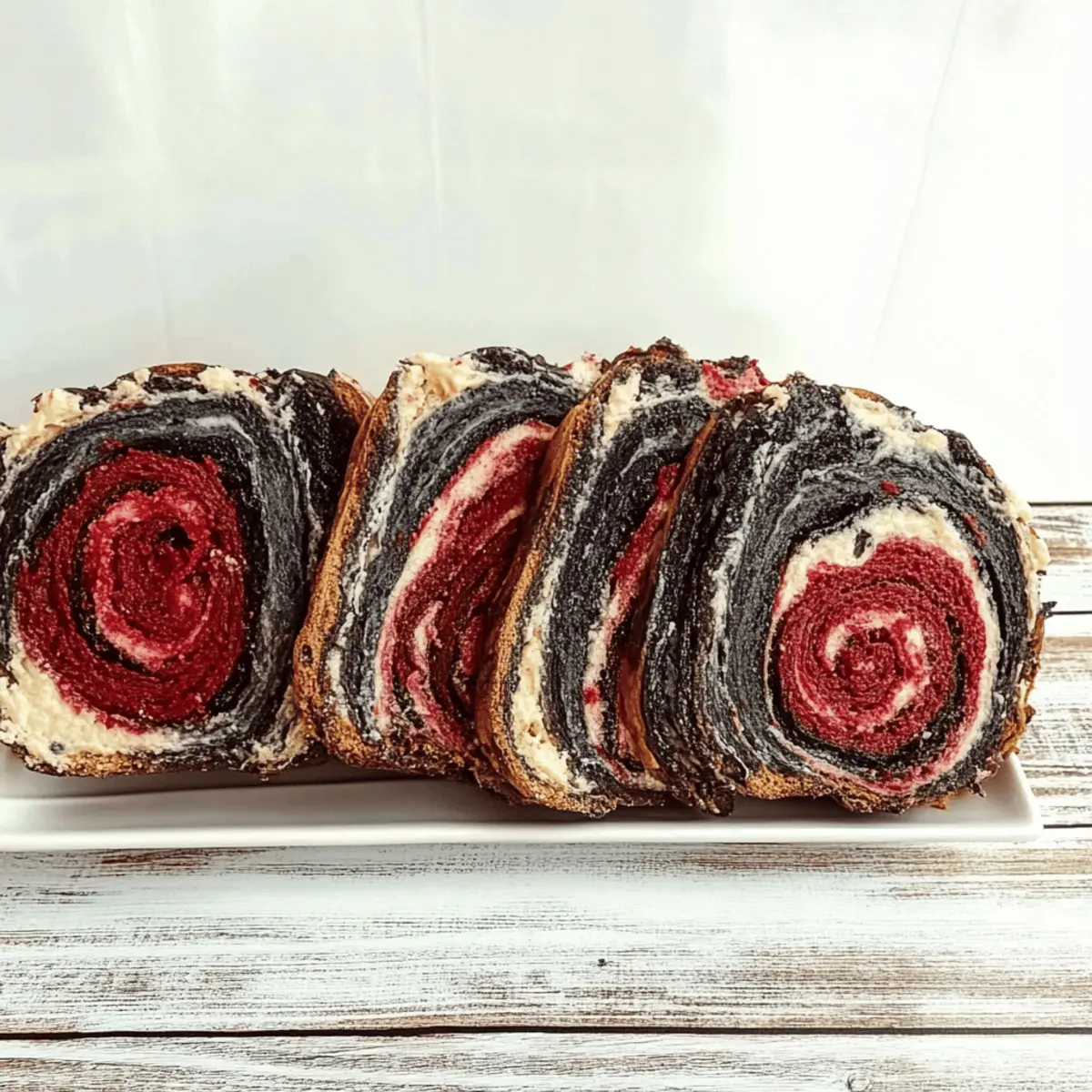Visual Appeal: Every slice of this bread reveals stunning red and black swirls, making it the perfect centerpiece for your Halloween table.